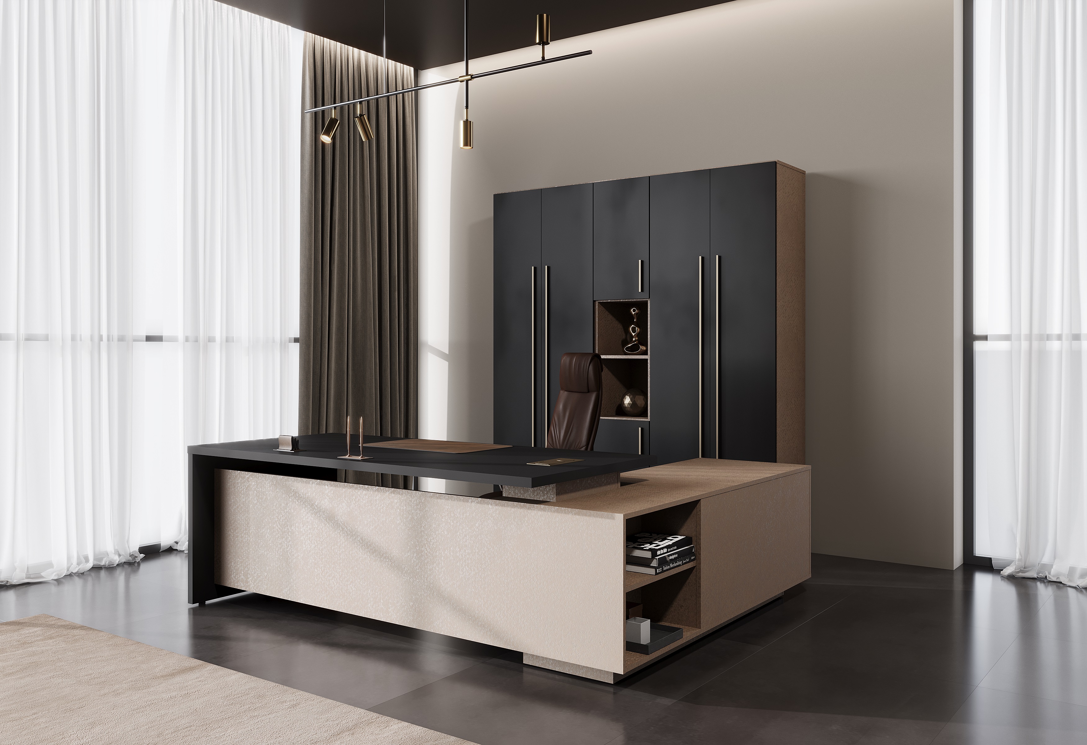 VELION — это не просто мебель для кабинета. Это воплощение современного дизайна, премиального качества и технологичности. Коллекция создана для тех, кто ценит исключительность и стремится окружить себя эстетикой и комфортом. Она подойдет как ценителям сдержанной элегантности, так и тем, кто хочет создать яркое, запоминающееся пространство. Благодаря уникальным сочетаниям декоров можно добиться кардинально разных концепций — от строгих до роскошных. Помимо эстетики, декоры VELLION отличаются технологичностью. В коллекции использованы покрытия EGGER с технологией синхронной поры, которые делают декоры неотличимыми от натуральных материалов. "Дуб сильвер" выглядит как настоящий шпон, а "Кобра" переливается, как бронзовый металл. Покрытие EVOSOFT — бархатистое, устойчивое к царапинам, химии и ультрафиолету. Особенно актуально для матовых декоров его преимущество — на нем не остаются следы от пальцев! VELION — это мебель, которая всегда выглядит безупречно. Откройте для себя коллекцию, которая изменит ваше представление о том, каким должен быть кабинет. VELLION — это вдохновение, воплощенное в мебели.