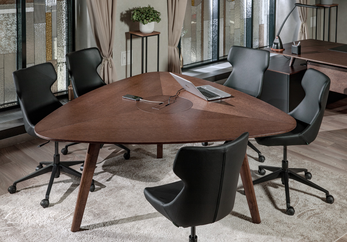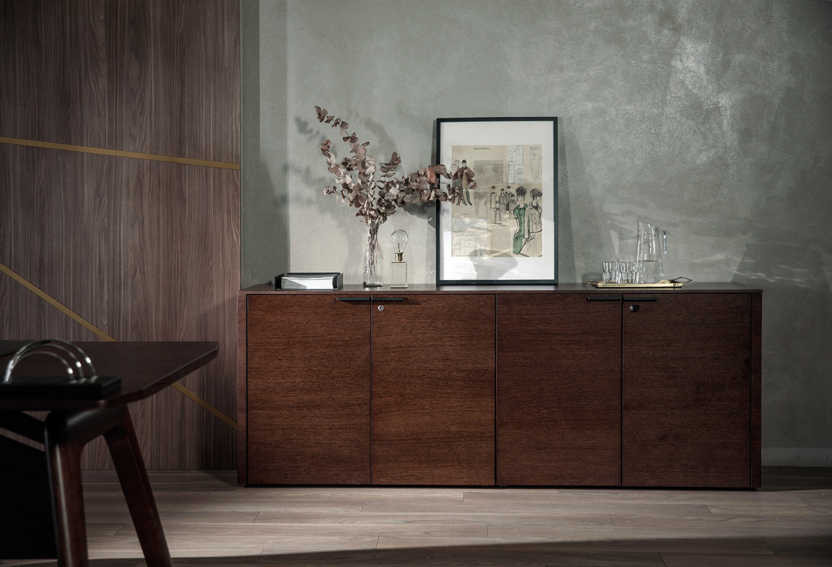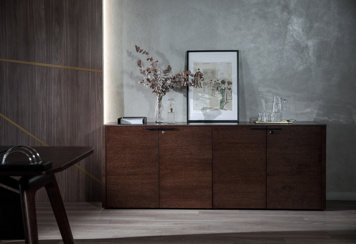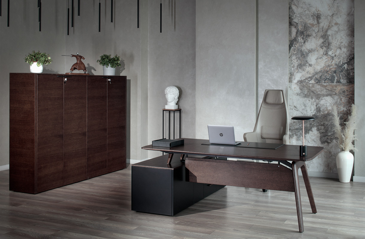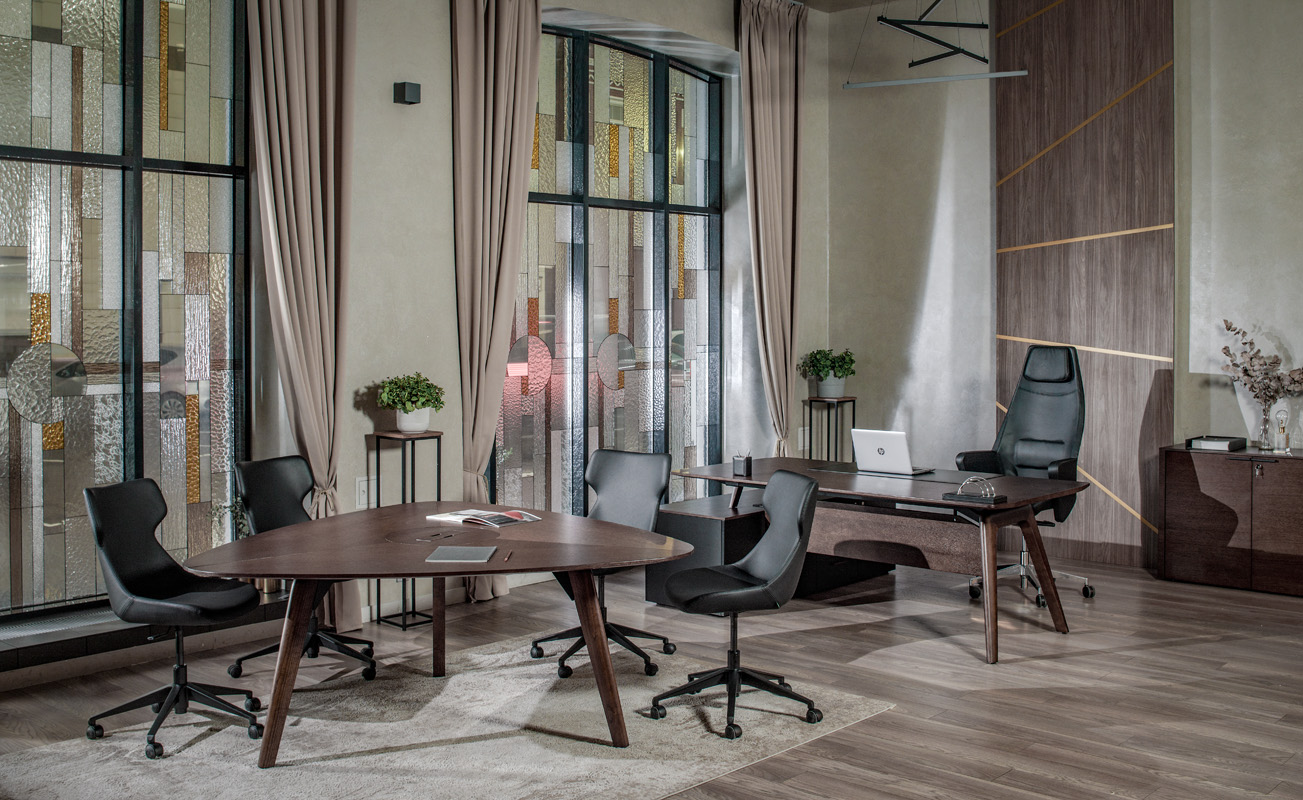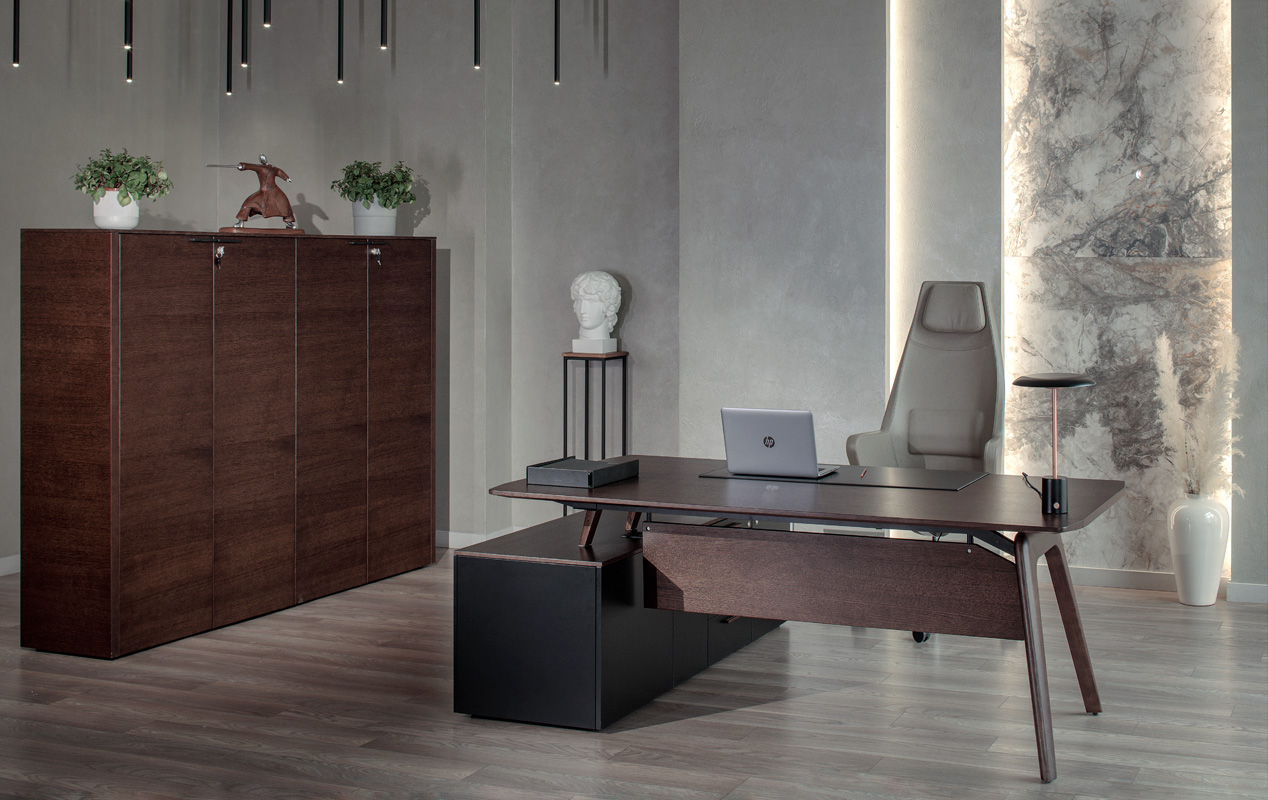 Кабинет Rail это воплощение утонченности и респектабельности. В нем удалось соединить статус, чувство собственного достоинства и комфорт. Стиль кабинета лаконичен, но в то же время построен на игре природной фактуры шпона. Здесь нет места категоричной прямолинейности: мягкие силуэты, сглаженные углы, плавные линии.